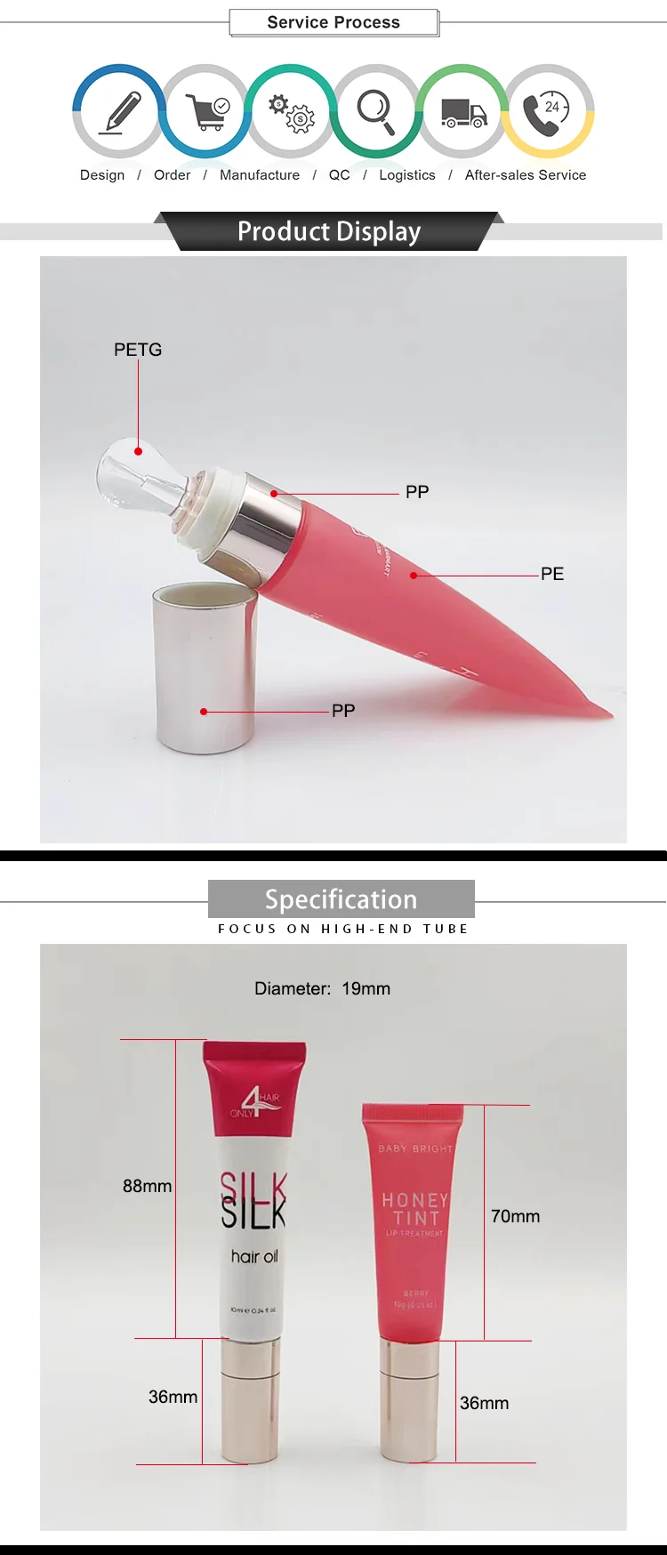 Our slanted tip tube design is derived from the curve of the lip, making the use of lip makeup products more fluid and elegant. The soft tip is made of TPE, protects the delicate lip and makes the lip care process enjoyable. The tube is slim and easy to carry, giving users a convenient experience. It's a perfect choice for lip balm, lipstick, lip gloss squeeze tubes.