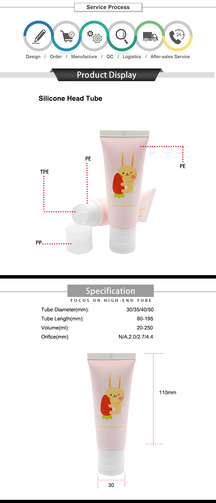 Highly recommend our Silicone head Tube with unique silicone head applicator design. After extruding the emulsion onto the skin, you can directly apply it with the silicone head evently. The soft silicone head protects the delicate skin and makes the skin care process enjoyable. It's a hot sell body lotion cosmetic packaging tube plastic tube.