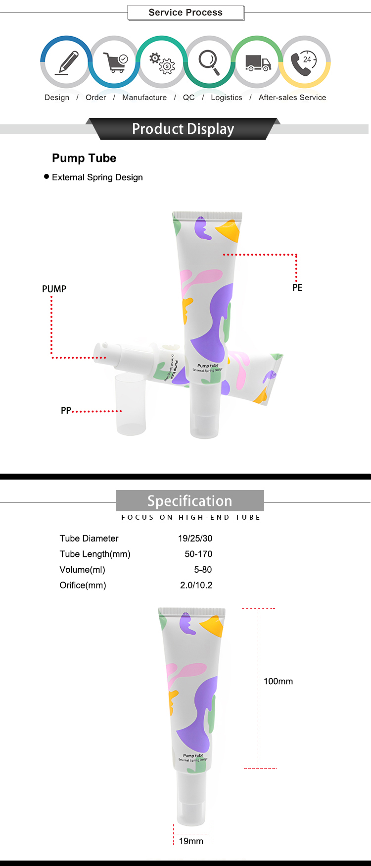Our newly designed Squeeze Soft Airless Pump Tube is a tube with a soft, squeezable structure, and it features an airless pump, which is a mechanism designed to minimize air exposure and maintain the product's freshness. It is designed for eye cream, eye serum, face serum, primer, liquid foundation, sunscreen cream plastic tube with lid soft tube cosmetic.