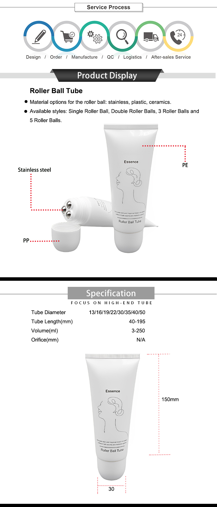 3 Mental Roller Balls tube, the massage applicator is designed to apply and massage directly and evenly when using massage cream or oil. It's suitable for face or neck serum tube packaging with alloy metal massage applicator. Material options for the roller ball: stainless, plastic, ceramics. Available styles: Single Roller Ball, Double Roller Balls, 3 Roller Balls, 5 Roller Balls.