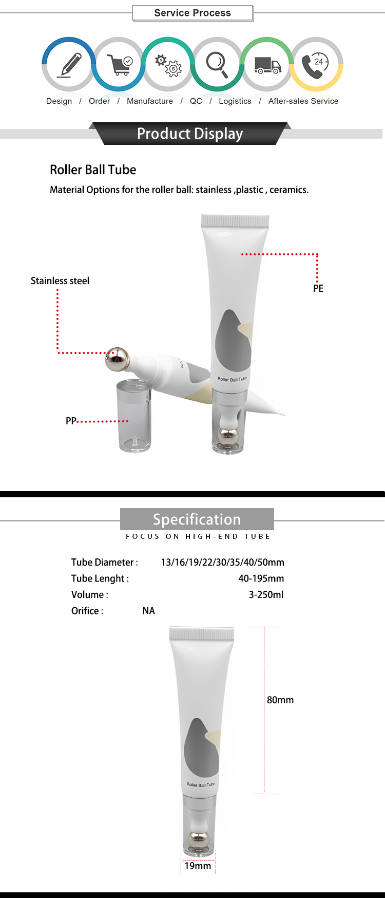 Luxury 15ml Roller Ball Tube packaging with alloy metal massage applicator eye cream massage tube 20ml ball cosmetic tube