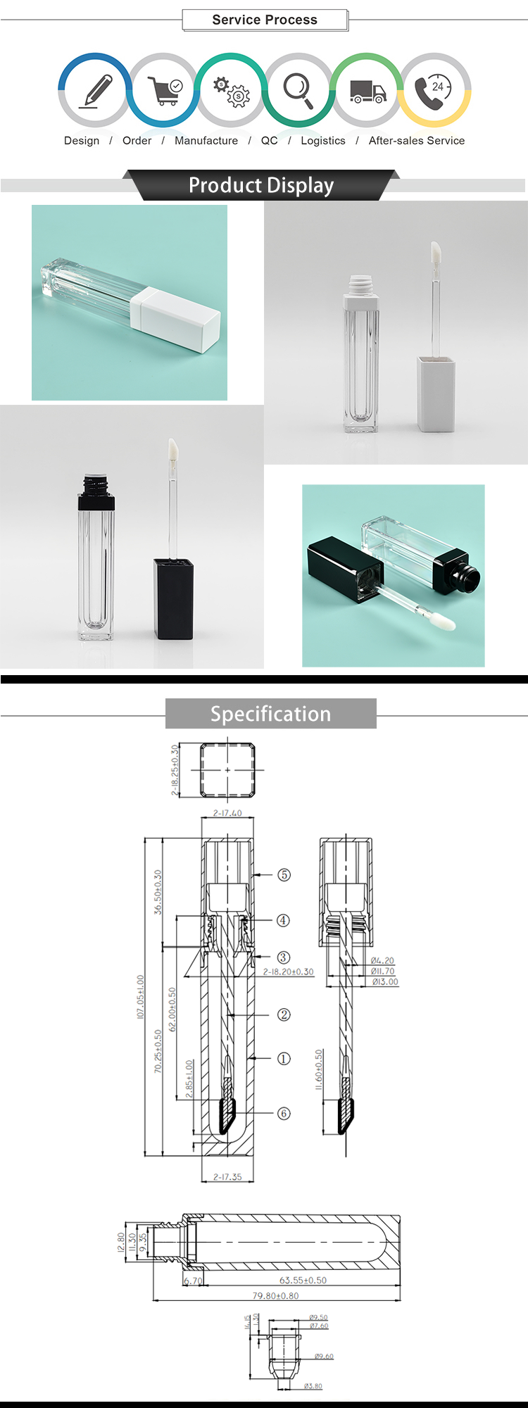 Mono Material PET Lip Gloss Wand Bottle/Tube This Square lip gloss bottle/tube is a customizable waterproof product packaging designed for lip gloss. Here are the characteristics and advantages: 1.Thickened walls: Our lip gloss packaging bottles/tubes have thickened, solid and durable walls. 2.High Transparency: Our lip gloss bottle/tube has a highly clear and transparent appearance, which can show the color and texture of the product and attract the attention of consumers.