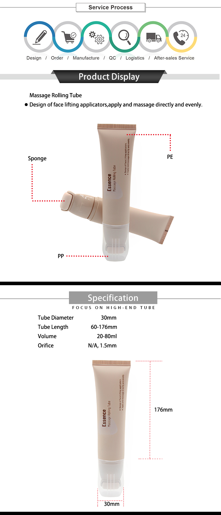 Sponge Massage rolling tube, the facial lift applicator is designed to apply and massage directly and evenly when using facial skin care or makeup products. It's perfect used as liquid blush, liquid foundation, liquid concealer packaging tube with sponge.